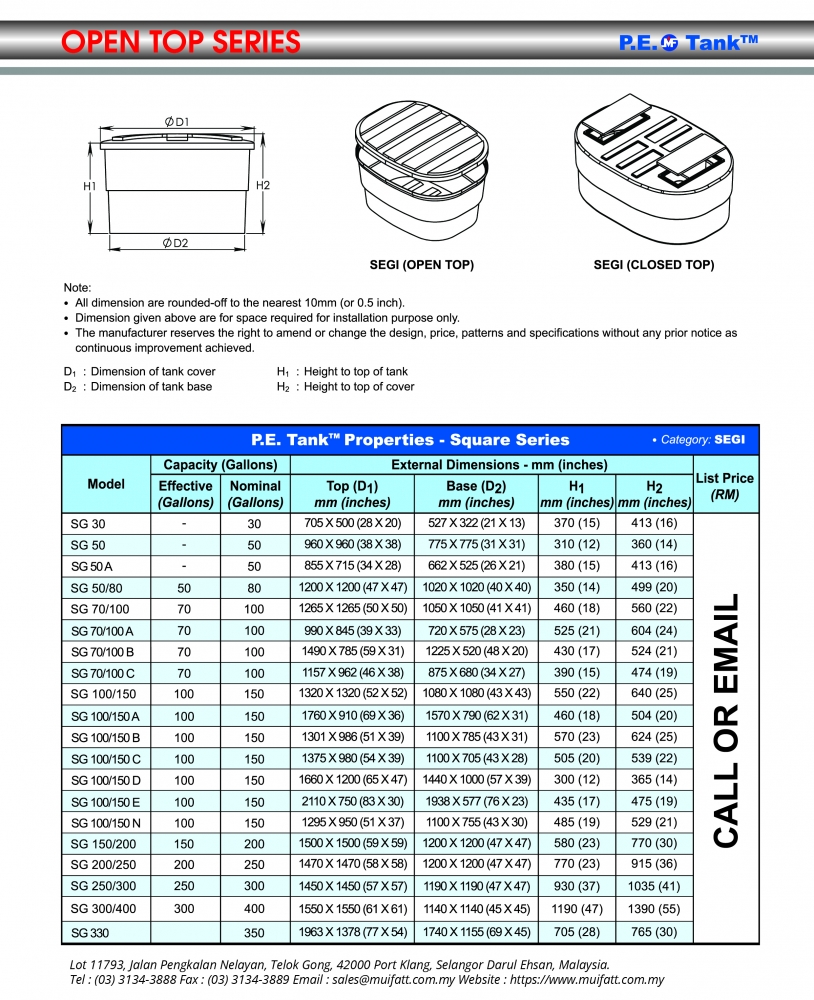 Untuk tangki fiber pula. Segiempat 5 X 5 X 3. Direka untuk keadaan luaran yang sukar tandas mudah alih diperbuat daripada plastik polietilena berkepekatan tinggi dan bahan tahan.