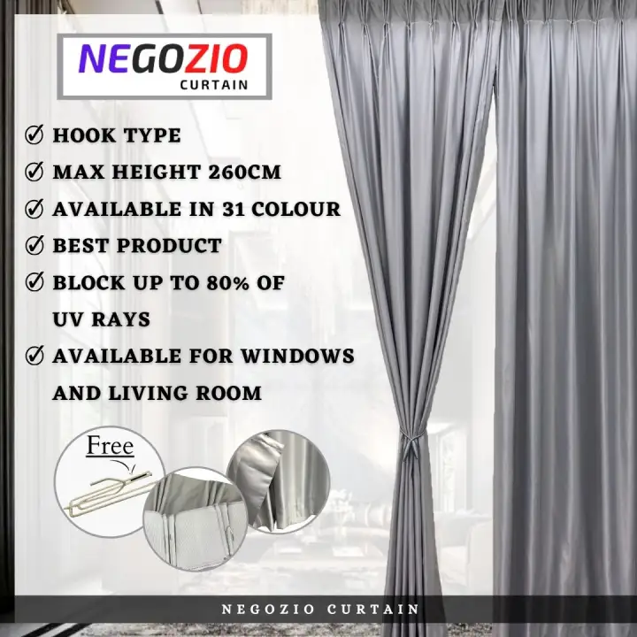 G10 Ready Made Langsir Rumah Langsir Raya Langsir Blackout Kain Tebal Curtain Free Hook Eyelet Warna Silver Steel Lazada