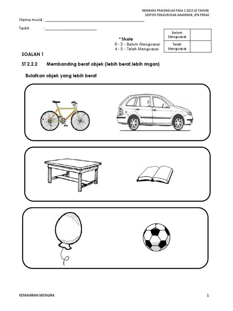 Jika anda melihat kesilapan atau kesalahan pada bahan. A Memerhati orang lain tempat dan benda daripada titik pandangan ruang yang berbeza. Guru memberikan lembaran kerja dan memberi arahan supaya murid menyesuaikan objek yang sama saiz besar dengan besar dan kecil sama kecil.