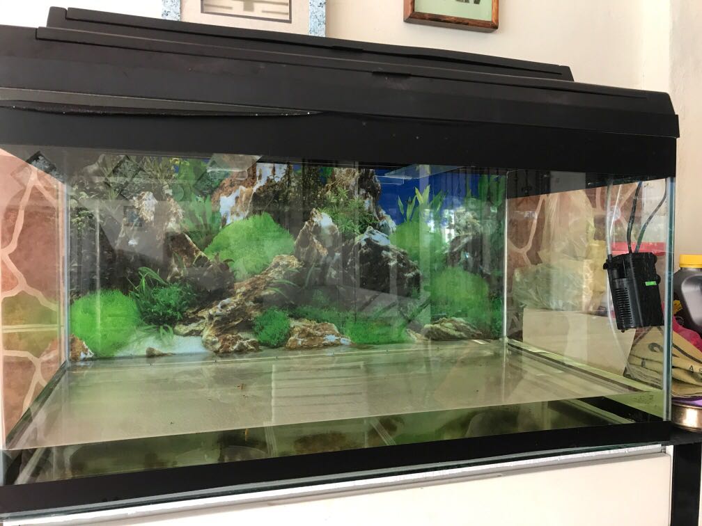 Akuarium kesayangan yang dah matang untuk dilepaskan. Akuarium Kaca 25 Kaki 2. Aquarium 4 kaki 2 biji full set jualan cuci tangan.