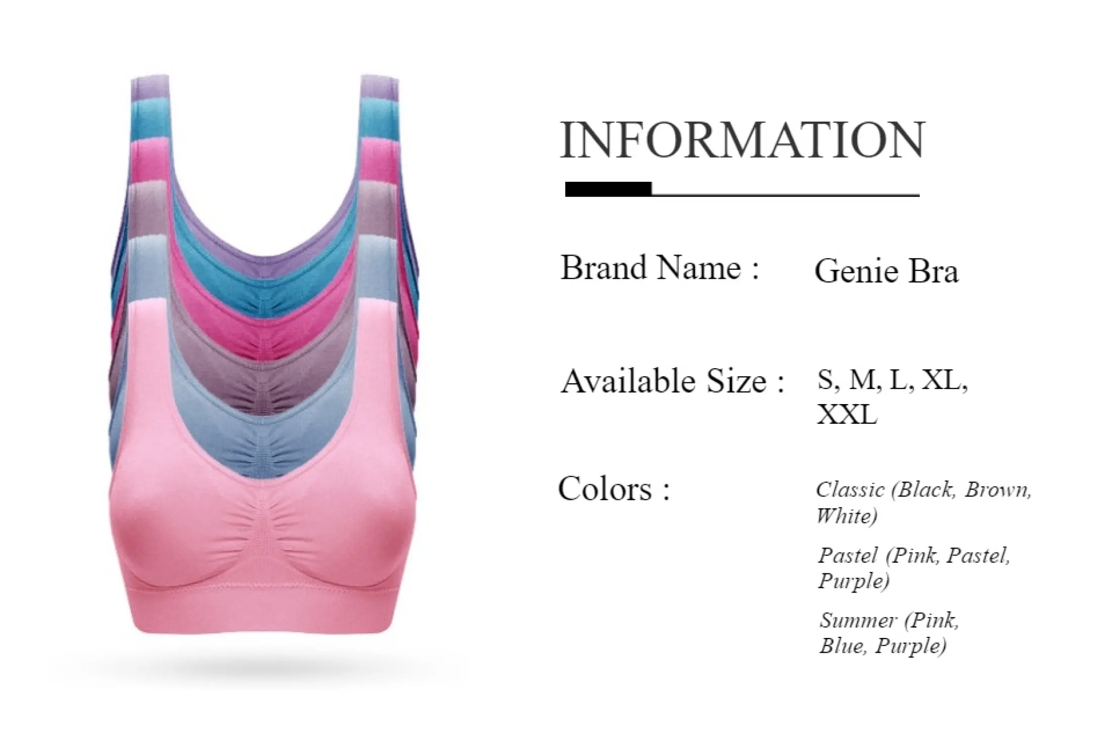 100 Original Genie Bra Classic Summer Pastel Color Bh Tebal Lingerie Wanita 1 Box Isi 3 Pcs Tanpa Kawat Pads Pad Cup Busa Ukuran Besar Sampai Xxl Lazada Indonesia